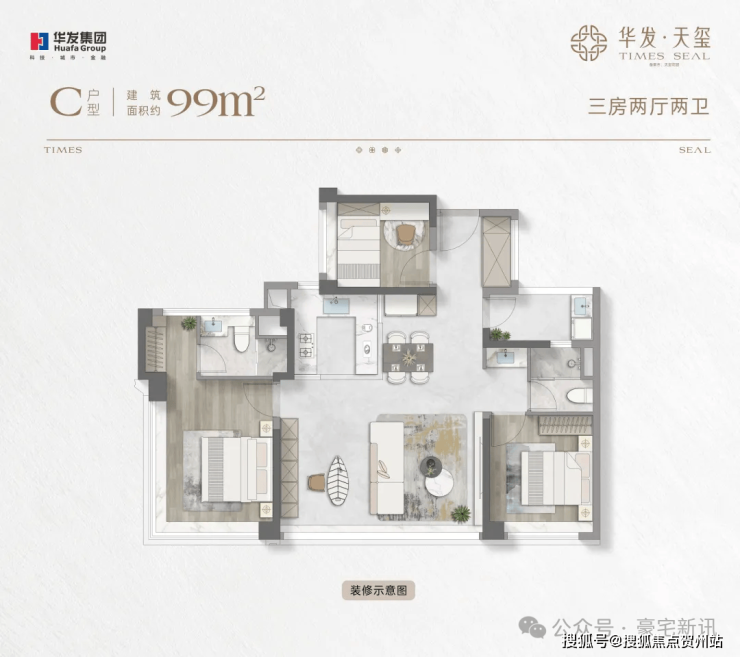 户型面积:建筑面积约99/114㎡ (新规产品,相当于传统建筑面积约120-150㎡户型)