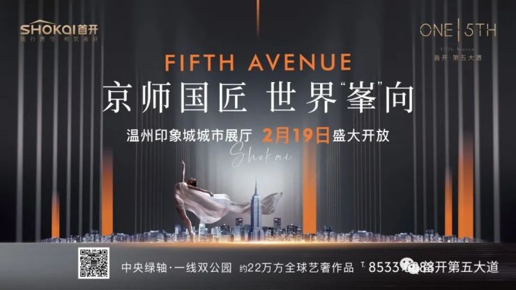 作为纽约第五大道上「277号公寓」的缔造者之一,首开契合温州城市的发展契机,将「277号公寓」高端艺奢的地标理念,赋新整个温州城市中轴。以纽约第五大道的高端营造基因,倾注进首开·第五大道,艺奢全球都会生活想象。