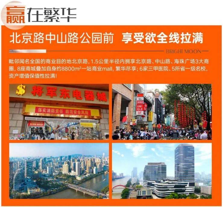 明月豪庭项目位于广州市越秀区解放中路421-459号,广州地铁1号线公园前站A出口附近;坐落于越秀区北京路商圈、中山六商圈、海珠广场批发商圈交汇处,从地位置上看可谓是得天独厚,名副其实的广州年度最强区位公寓新品。