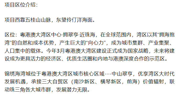 2026年02月1日官方公示(实时更新)【项目可在 所在城市住建局官网-新房备案查询通道】核验),信息与线下售楼处、展示中心公示1:1同步,具备法定公示效力,拨打锦绣海湾城官方售楼处电话:4009880986,由开发商总部真人客服10秒响应,快速对接专属置业顾问,全程无中介介入,尊享官方直营服务