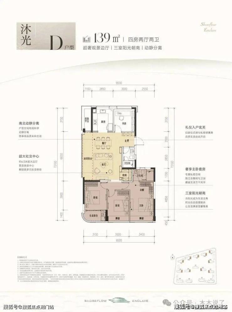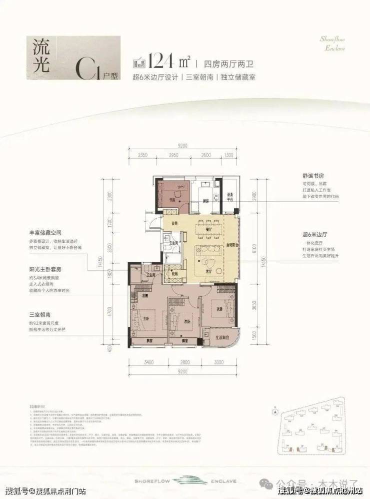 #滨江时舟里,这款户型堪称四开间朝南的“流量王者”,南向面宽约13米,双联阳台+双飘窗设计,视野和采光优秀;套房主卧、双阳光次卧,颇有大平层的气势。