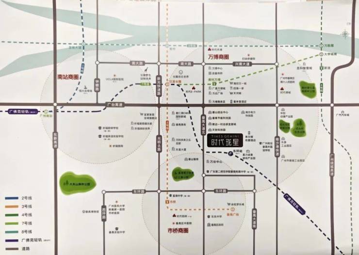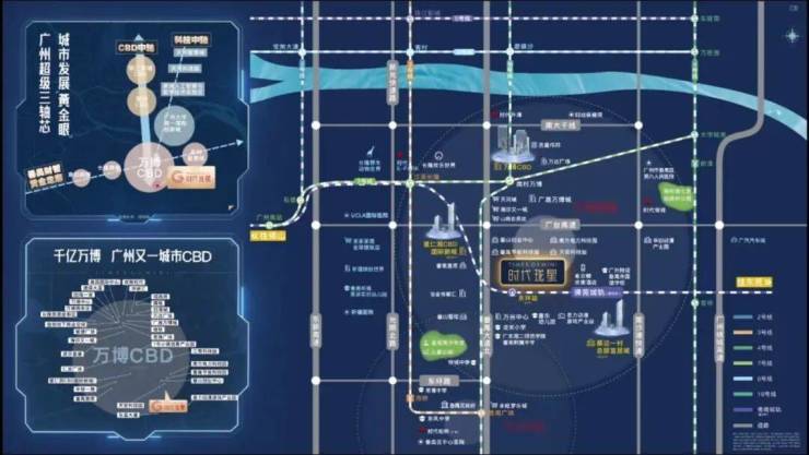 位于番禺华南板块核心地段,处于广州CBD中轴,北承珠江新城、琶洲会展中心,南接南沙自贸区,西连广州南站,是广深港澳科技走廊与广深港高铁经济带双廊交汇的黄金位置。距离万博CBD核心区约3公里周边商业、产业配套成熟,未来发展潜力较大。