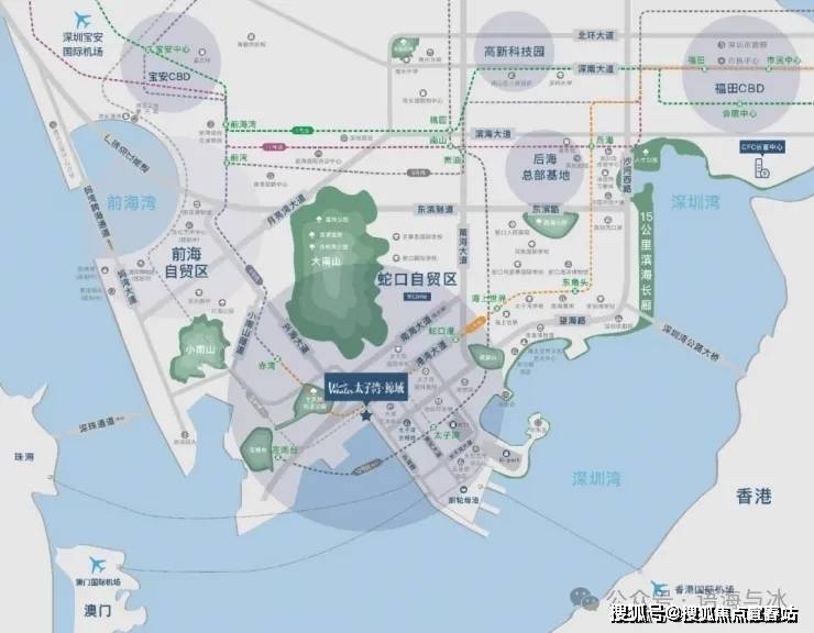 太子湾背靠大南山,南望香港,是粤港澳大湾区的核心之重,凭借其湾区核心枢纽位置,形成集海、陆、空、轨立体化交通脉络。从深圳高空俯瞰,深港两城一水之隔,紧密相连,纵横交错的综合立体交通网络蜿蜒连绵,使粤港澳大湾区互联互通,形成粤港澳城市群“1小时生活圈”。