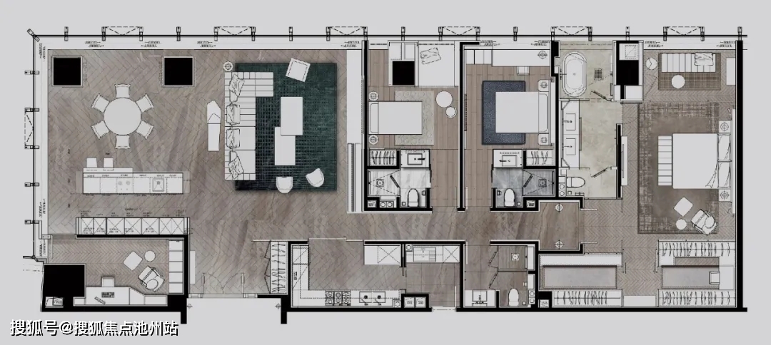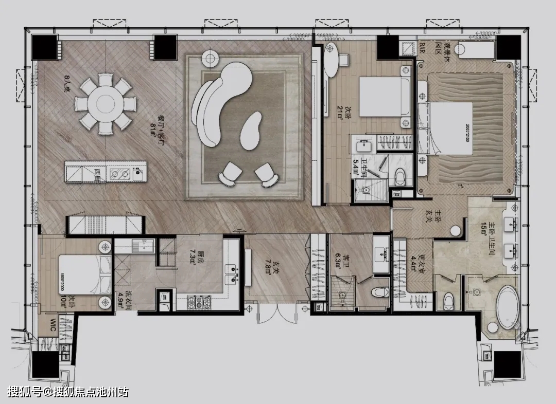正气舒朗室内格局,三套房设计张弛有度,行止坐卧,江天为伴。