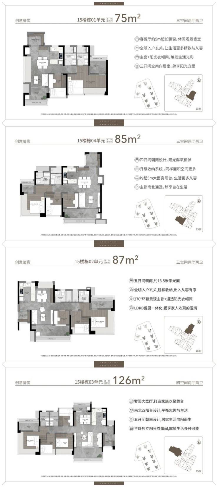 6、在售户型:建面约75/86/102/125㎡全南3/4空间