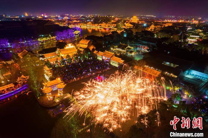 枣庄台儿庄古城游客观看火龙钢花表演。 台儿庄区宣传部供图