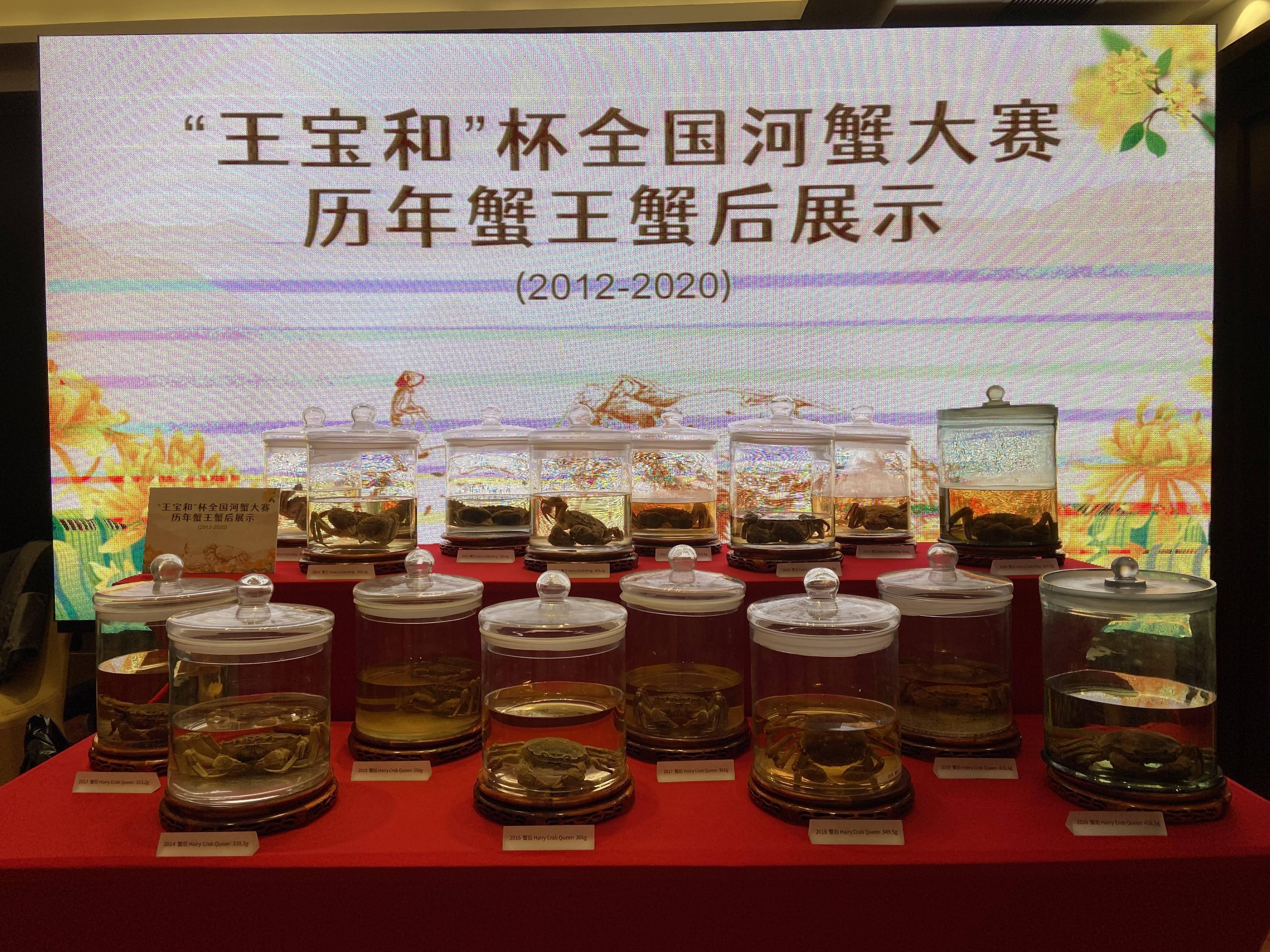 2012-2020年的“蟹王”“蟹后”展示。 澎湃新闻记者 陈悦 图