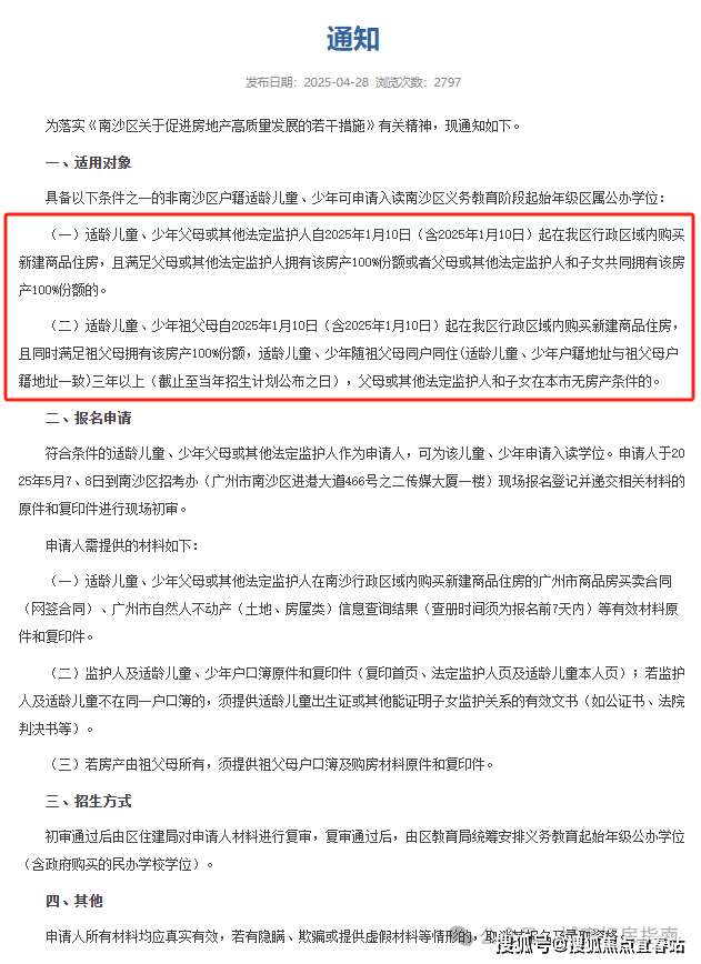 通知明确指出,适龄儿童、少年父母或其他法定监护人自2025年1月10日(含2025年1月10日,下同)起在南沙区内购买新建商品住房,且满足拥有该房产100%份额或者和子女共同拥有该房产100%份额的;
