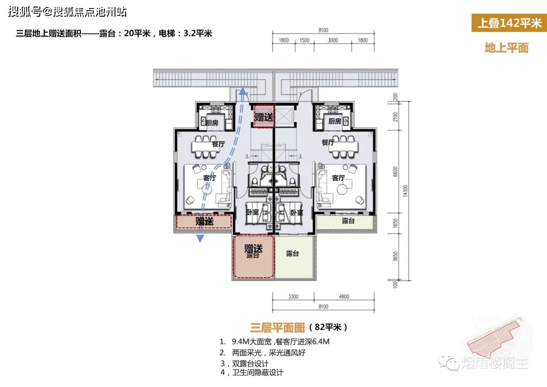 地上赠送:庭院:48平,电梯井:6平,挑空:30平