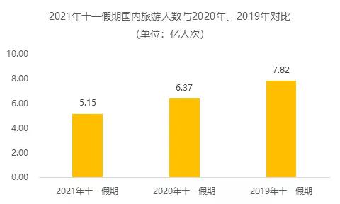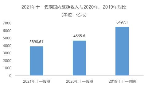 根据文化和旅游部数据中心测算,2021年十一假期,全国国内旅游出游5.15亿人次,按可比口径同比减少1.5%,按可比口径恢复至疫前同期的70.1%。实现国内旅游收入3890.61亿元,同比减少4.7%,恢复至疫前同期的59.9%。