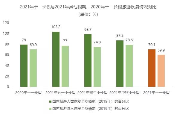 图2:2021年十一长假与2021年其他假期、2020年十一长假旅游恢复情况对比