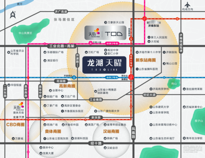 伴随着凤凰路规划北延、奥体西路北延,济南新东站交通优势的放大,济南CLD片区红利逐步兑现,“三芯一路”格局即将撑起济南主城区东部发展的框架。未来区域内部将形成多网格及活力街区,对外将以轨道交通联通高新区、CBD、主城区,形成城市新核芯,开启TOD世界芯格局,龙湖·天曜以超前的眼光布局济南千亿新东站,迭代一城人居坐标。