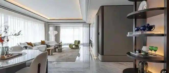 300㎡江景大平层:主力户型为300㎡大平层,采用大面积落地窗设计,客厅视野开阔,自然光与江景无缝融合;开放式餐厨布局增强家庭互动,厨房配备国际一线品牌厨具,满足高端宴请需求1。