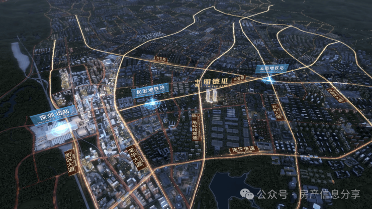上梅观高速经由彩田路快速直达福田CBD,经由南坪快速可到达南山高新园总部基地、罗湖万象城、前海自贸区,构建快速城市中心生活圈;1.1公里民治地铁站(5号线、规划中22号线),1.3公里五和地铁