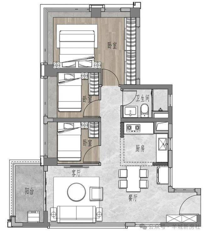 :功能分区优化,主卧带独立卫浴,兼顾实用与舒适