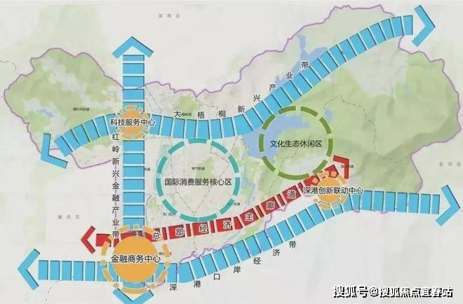 大湾区金融极:其中红岭新兴金融产业带作为"深圳三大金融增长极”之一,与前海国际金融城、福田香蜜湖金融街并列,罗湖将先天的金融优势及政府的政策支持,以金融产业赋能罗湖新发展,助力深圳成为大湾区经济发展引擎。( 信息来源:罗湖发布)