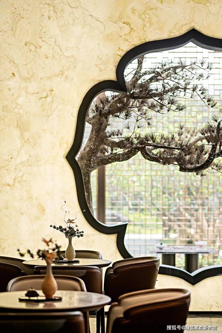 抬眸望去,眼前是绿意葱茏的龙熹山,身后是以天然温润青玉雕刻的苍松迎客画卷,依山为伴,拥绿入怀。