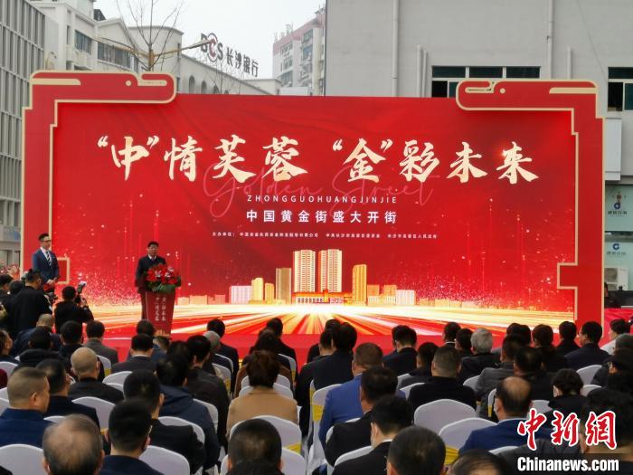 中新网长沙12月12日电 (付敬懿 文进)中国黄金街开街仪式12日在湖南长沙市芙蓉区建湘路黄金之城举行,长约500米的路段云集了40余家黄金珠宝大牌,伴随中国黄金集团旗下电商总部落户,未来中国黄金街将建设成为集黄金珠宝批发、零售、电商、进出口贸易、回收等集商文旅于一体的黄金主题特色商业街。