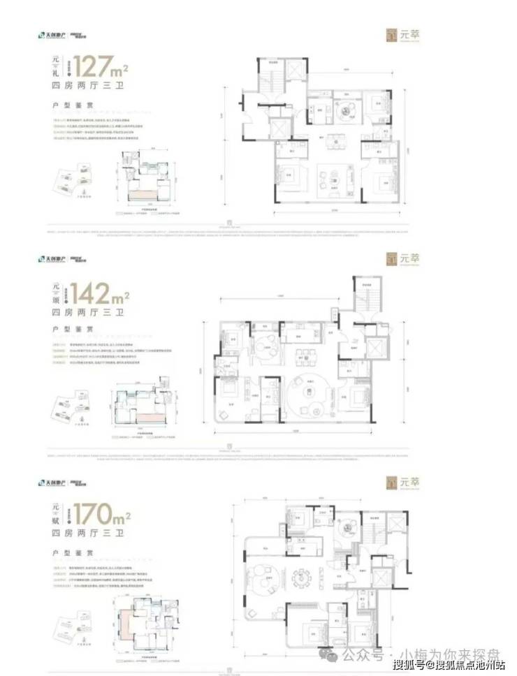 项目规划已经公示,一共4栋住宅,户均131㎡,10-13层小高层,毛坯交付,面积段为127-170平,户型图已更新