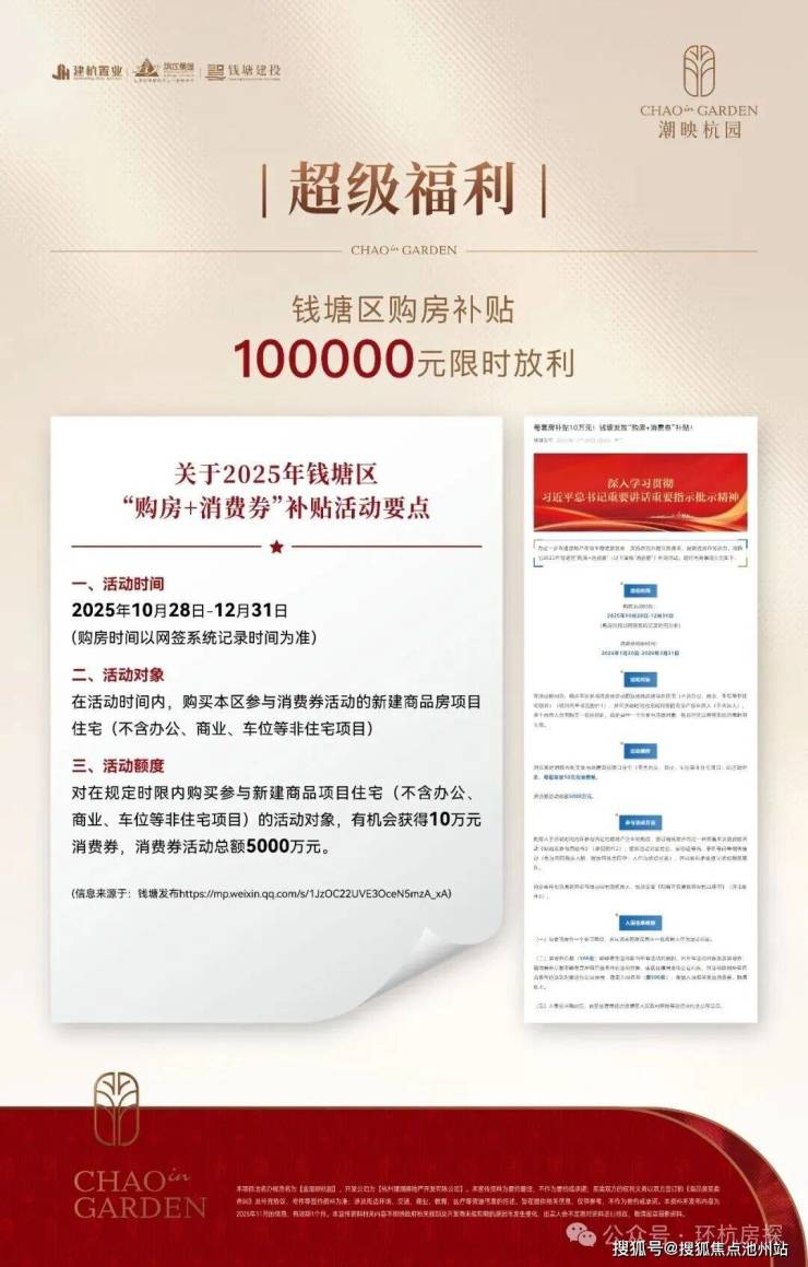 最后说一句,钱塘区官方“购房+消费券”补贴活动,2025年12月31日之前购房,有机会享受官方10万消费券补贴!