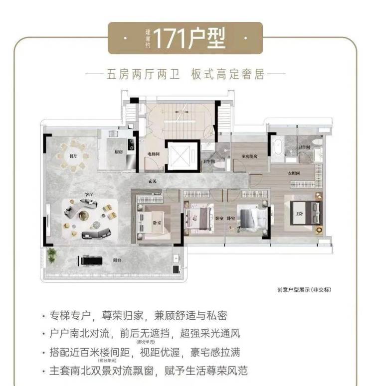 建面约171㎡奢适五房
