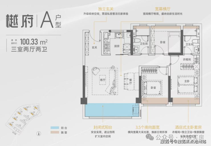 结合目前在售情况,项目在售最小面积就是100平三房户型。