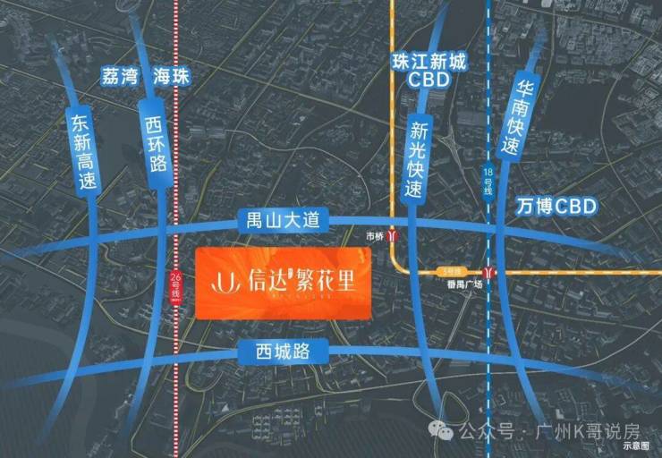 临近两大主干道——禺山大道、西环路,接驳东新高速可达荔湾/海珠,接驳新光快速可达万博CBD、珠江新城CBD,通达全城!