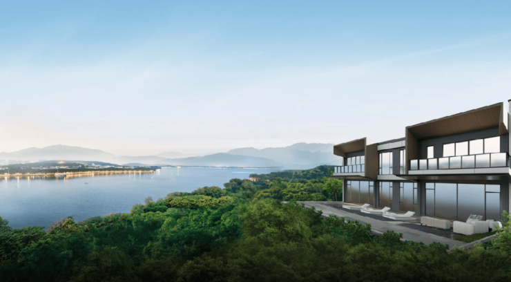 【择江山独墅,闲看千重景】的定位是倚靠“半山地势”瞰景,一墅平眺“一线西江”,风光入室,纵览江与山多重景观面的意思