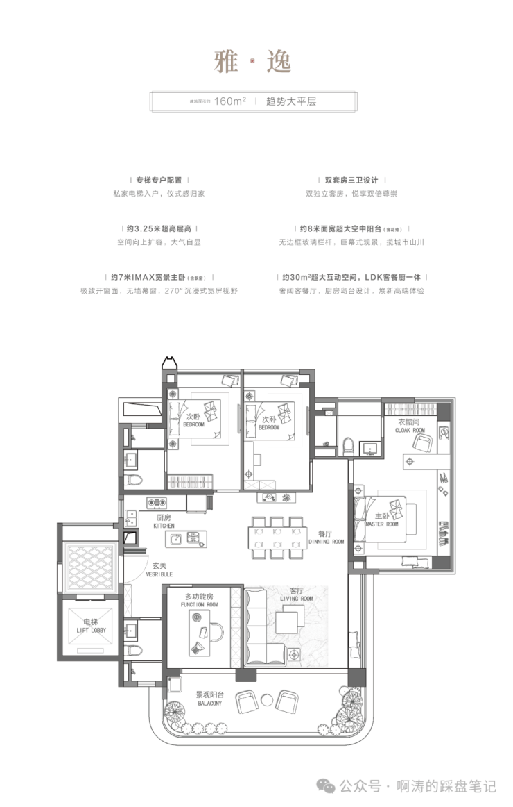 ⚜户型:一期建面约160-280㎡趋势大平层四至五房,二期建面约268-280㎡准独栋别墅
