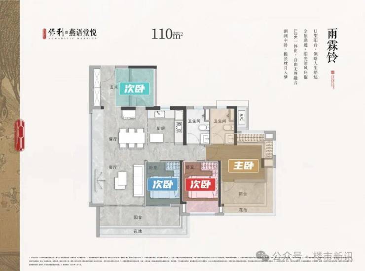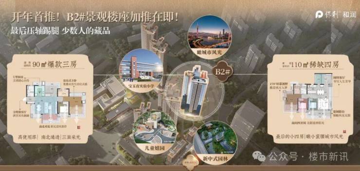 约110㎡四房;视野开阔,望城市景观!最后臻藏小四房。