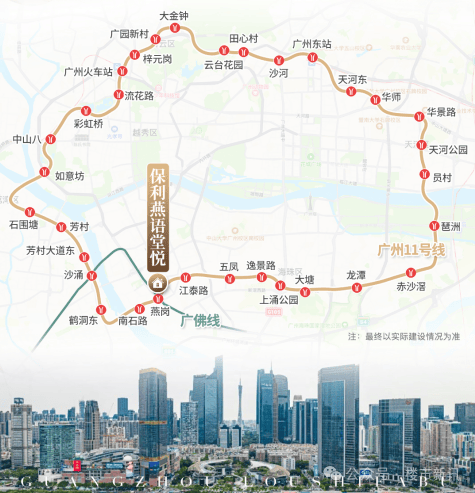 约50m燕岗站,广佛线、11号大环线(土建工程已完成98%,将于年内通车)双地铁上盖,4站达上涌、8站达琶洲,轻松链接全城。