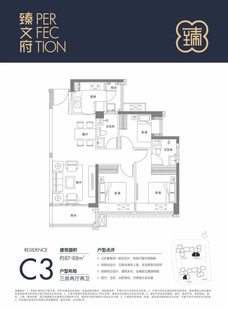 C3户型约87㎡3房217万起