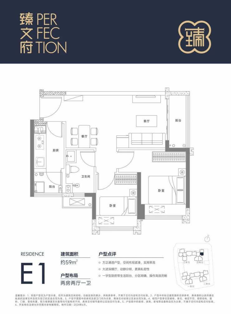 E1户型约59㎡ 2房 147万起