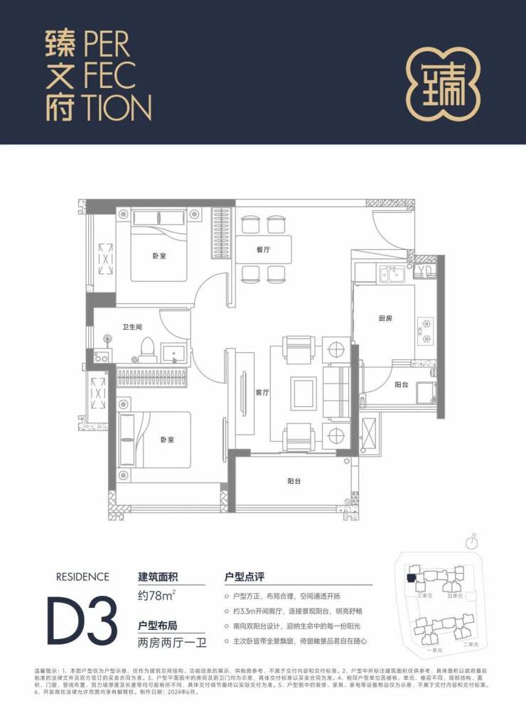 D3户型约78㎡2房195万起