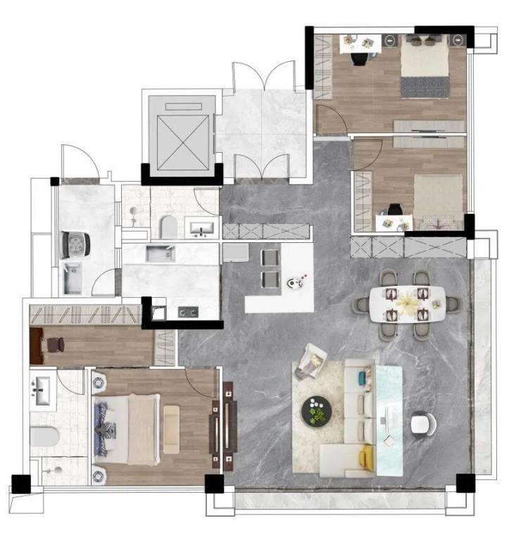 【E2#江境·A户型】建面约166㎡ 四房两厅三卫