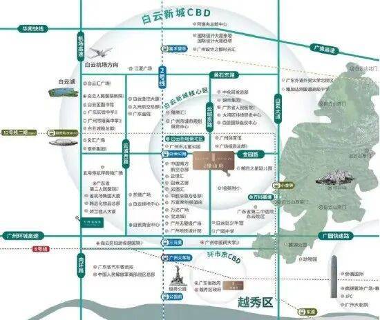 项目紧邻广州儿童中心、白云国际会议中心等六大省市级地标建筑,南航三大总部、无限极总部、地铁设计院总院等总部大楼环绕在旁,共同构筑了一个高端、商务、国际化的生活圈层。