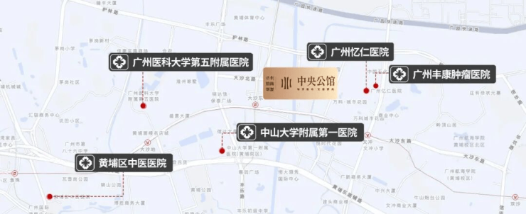 约1.5km即有中山大学附属第一医院东院、广州医科大学附属第五医院为您和家人的健康保驾护航