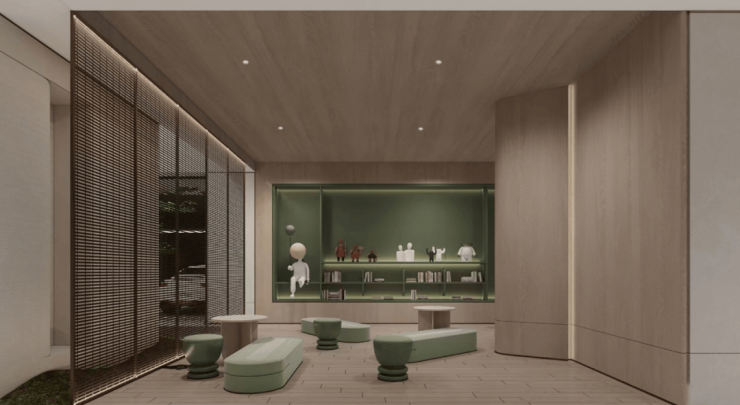在每一栋建筑的1层,都打造了内容丰富的泛会所空间:儿童书吧、社交茶室、共享办公等不同主题的空间。