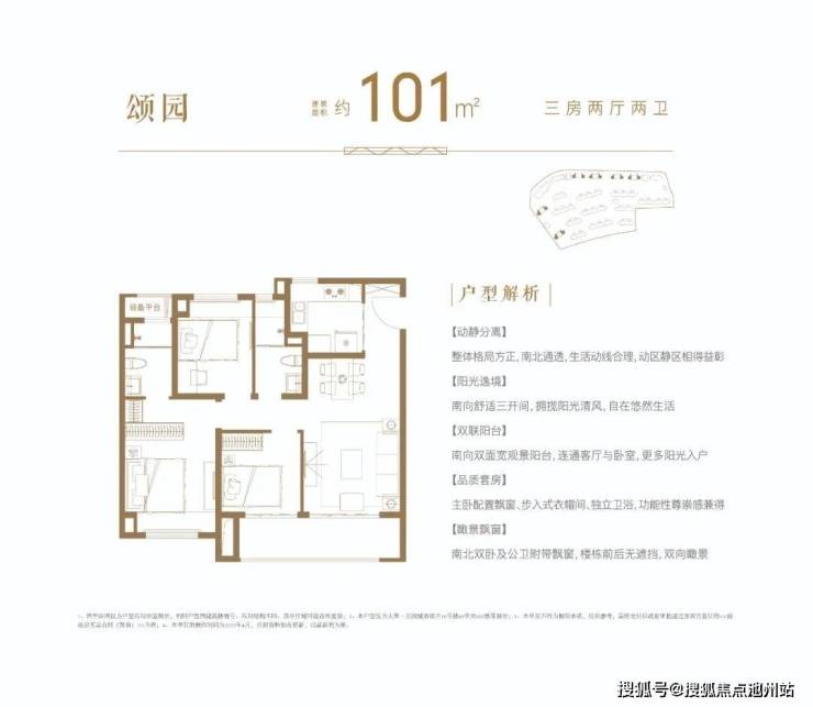 在101㎡三房两厅两卫户型中,除了完美继承89㎡户型高利用率、大飘窗等优势外,还增加了独立玄关和玄关收纳,主卧设计独立卫生间,居住体验更上一层楼。