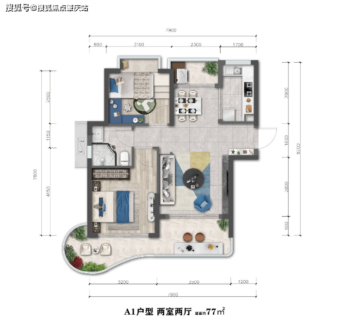南北通透双阳台,双向对流,清风阳光登堂入室,明厨明卫,舒适度假型户型
