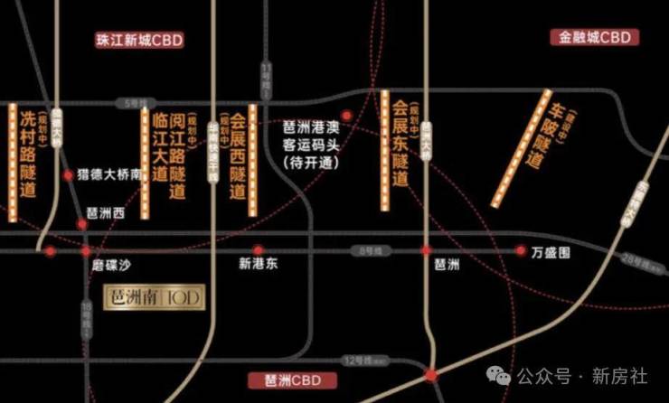八横:阅江西路、琶洲大道、新港东路、凤浦路、会展大道、规划横一路、规划横二路、新滘东路;