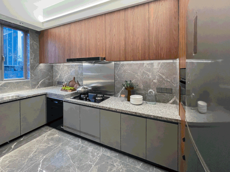 根据喜好,可打造全开放式厨房,餐厅吧台设计,让家庭、朋友聚餐更充满互动性。