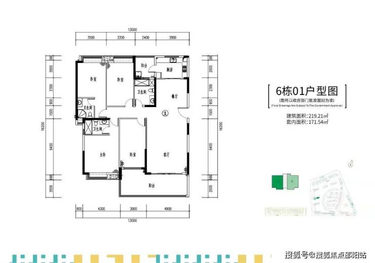 在售的6栋,两梯两户,建面约219-235㎡四房大平层户型。