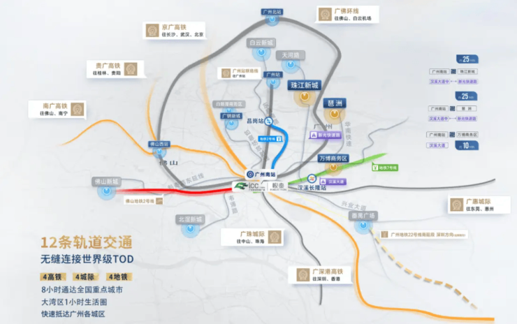 即将通车的广州东环城际,3站可达琶洲、4站直达金融城,30分钟便能抵达白云机场;