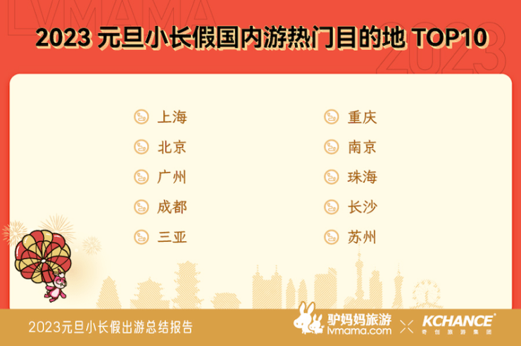 同程研究院分析认为,2023年元旦假期,部分目的地的市场恢复超过预期,显示了国内游客出游信心的快速修复,也为2023年的旅游市场复苏奠定了良好的基础。