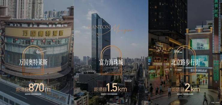 海珠越秀 8 大高能级商圈环绕项目,满足业主多样化的购物与娱乐需求。2KM 范围内有万国奥特莱斯、海港城、北京路天河城等;3KM 范围内则有太古仓商圈、中大时尚消费商圈、广州塔 - 琶洲等 8 大商圈。无论是高端购物、时尚消费,还是休闲娱乐、品尝美食,都能在这些商圈中找到心仪的去处,让业主尽享繁华都市生活。
