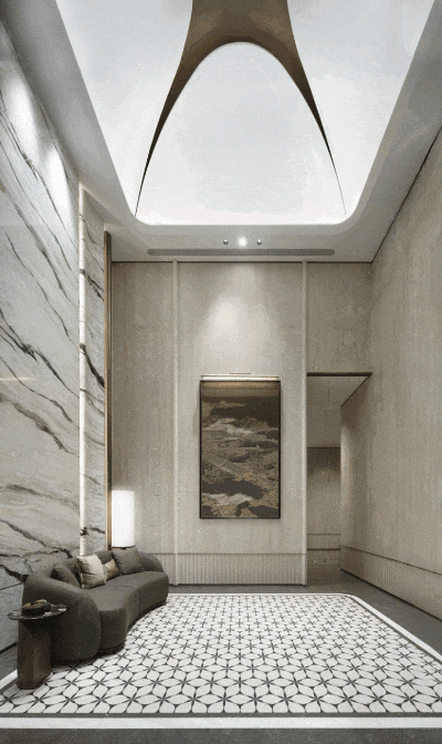 会所沿着归家动线布置,分封闭与开放两大区域,设置了五个常用功能空间。