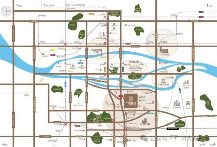 广地花园地处华快入口,自驾十分钟到琶洲新洲站,十五分钟到珠江新城,对平时自驾出门的朋友特别友好,当然,华快也会塞车,但起码在广地出发,可以少堵一段路,时间相对会更有保证