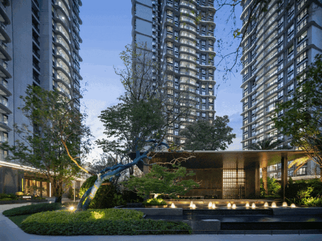 园林方面,项目同样下了大手笔,融入了艺术和度假的元素。各景观节点,增加了像朴树、冬青、乔木等名贵树种。再加上奢石等特色材料的运用,整个园林景观有着豪华酒店的质感,四季都能有不同的景观。