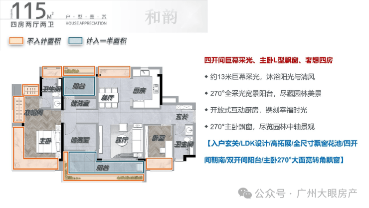 115方,多房朝南厅出大阳台空间感满满,下班放空的好地方,同时空气对流和采光不忧愁,800mL型飘窗额外拓宽功能空间,收纳力拉满,灵活多功能空间,自由组合,满足收纳达人的整理需求